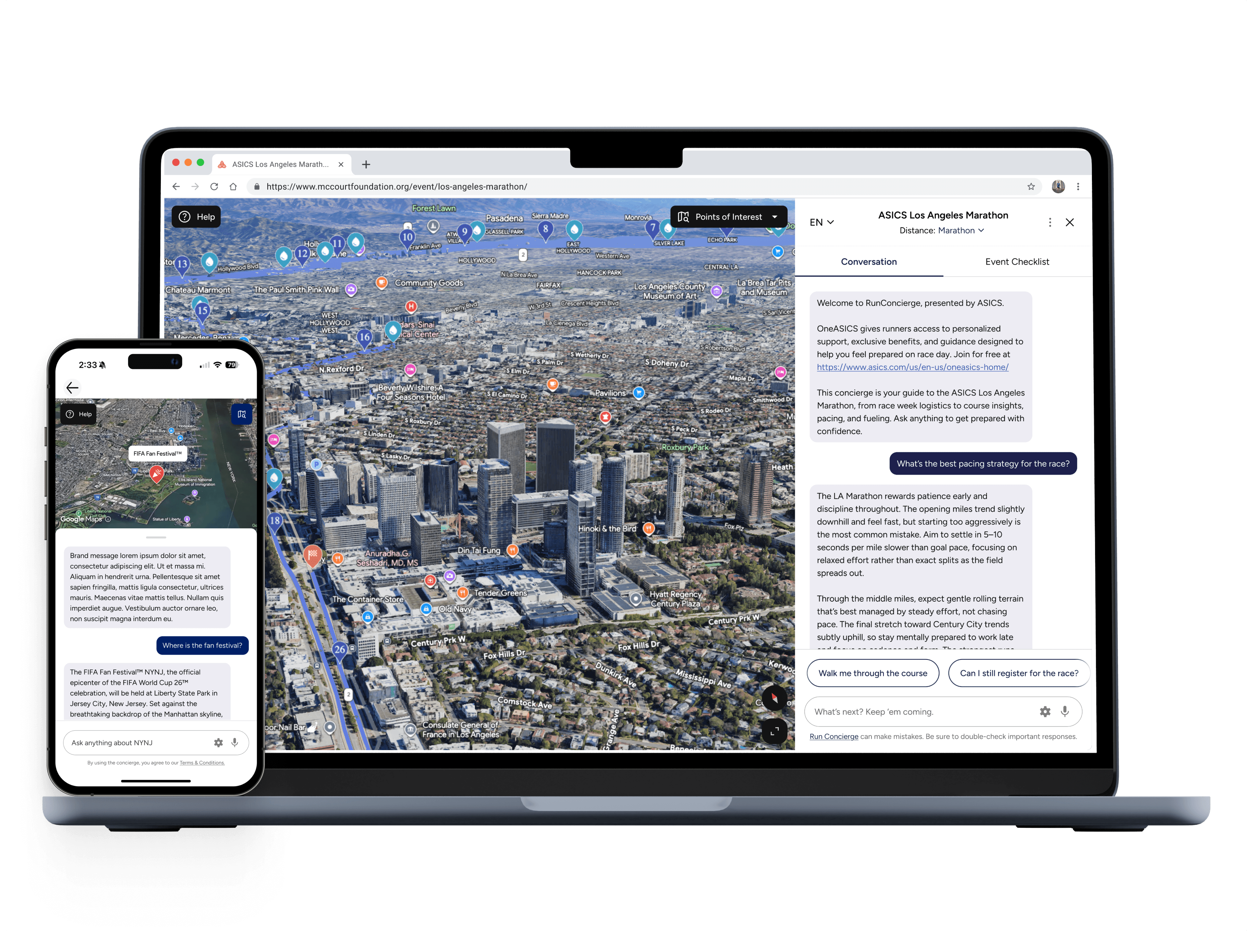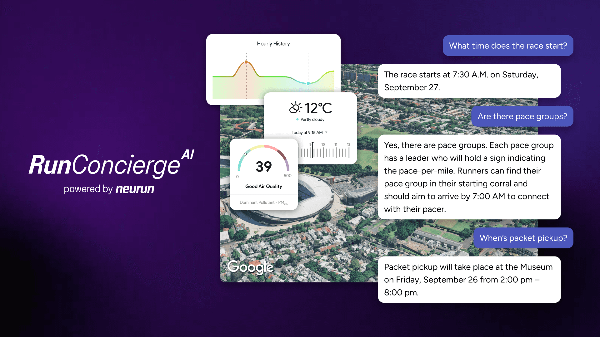 RunConcierge applies Neurun’s core technology to race weekends and training journeys, bringing together routes, schedules, logistics, recommendations, partner benefits, and real-time updates into a single, conversational experience. These are combined seamlessly with a 3D, interactive map that responds to users’ queries in real-time.